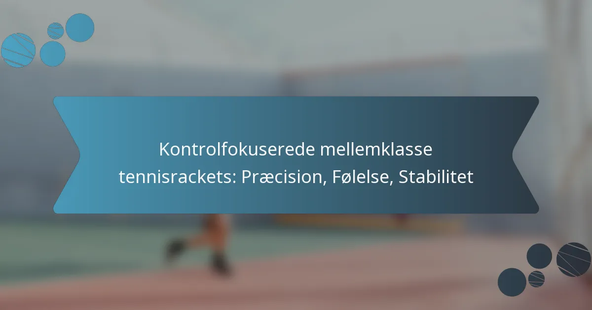 For kontrolfokuserede mellemklasse tennisrackets inkluderer nøglespecifikationer vægtfordeling, balance, strenge mønster, hovedstørrelse og grebskomfort. Disse faktorer påvirker i høj grad præcision, følelse og stabilitet under spil, hvilket gør det muligt for spillere at forbedre deres præstation på banen.